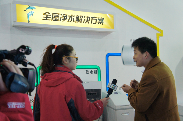 榮事達展廳內(nèi)客戶或駐足觀看、或拍照咨詢、或洽談合作,人氣非凡,絡繹不絕,成為全場最熱鬧的展廳之一。其卓越的產(chǎn)品和超高人氣也引來了眾多媒體的關注,華北大區(qū)總監(jiān)胡鋒接受了《凈水論壇》等記者的訪問,以全屋凈水方案為重點,展示了榮事達的尖端技術水平和人性化飲水方案。
