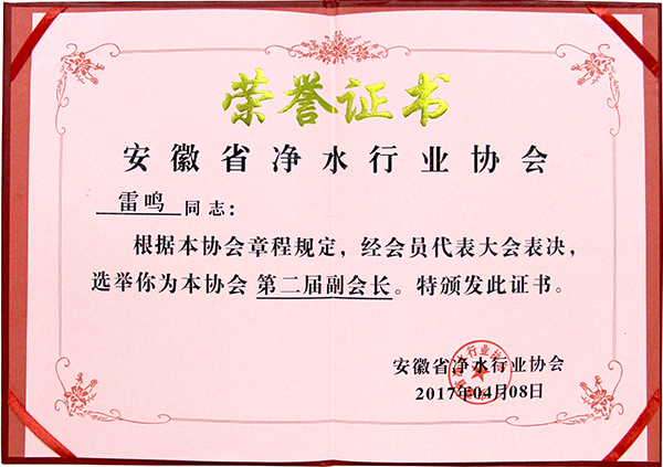- 熱烈祝賀榮事達(dá)水工業(yè)公司董事長(zhǎng)雷鳴連任安徽省凈水行業(yè)協(xié)會(huì)副會(huì)長(zhǎng)