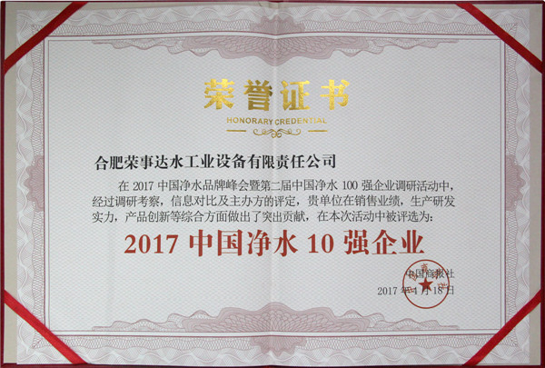 - 榮事達(dá)再斬“中國凈水10強(qiáng)企業(yè)”、“消費(fèi)者滿意品牌”等多項大獎