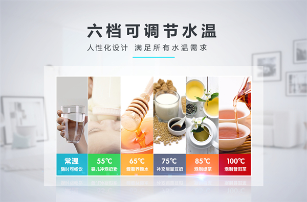 飲水機(jī)以加熱飲水為根本,不同的生活場(chǎng)景對(duì)于水溫的需求也各不相同。傳統(tǒng)飲水機(jī)多為常溫水和熱水雙重選擇,使用限制較大。為提升產(chǎn)品的人性化體驗(yàn),榮事達(dá)智能溫?zé)犸嬎畽C(jī)采用六檔可調(diào)節(jié)水溫設(shè)定,常溫、55℃、65℃、75℃、85℃、100℃,不同水溫可以充分滿足大眾直飲、沖奶、泡茶等各類飲水使用需求,生活更為簡(jiǎn)便。