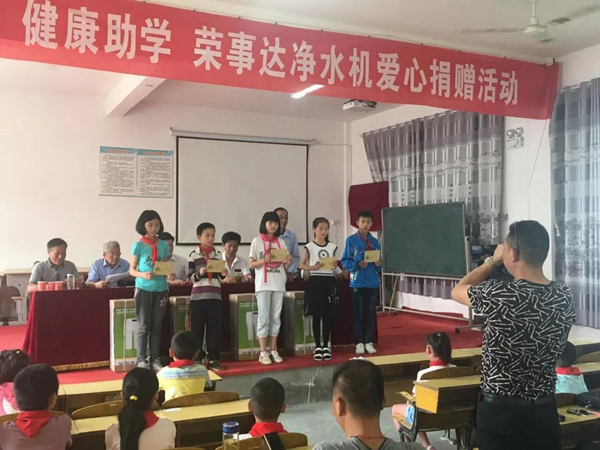 2018年6月1日,榮事達(dá)走進(jìn)紅色革命老區(qū)——金寨縣,攜手金寨希望公益服務(wù)中心及地方公益協(xié)會(huì)共同發(fā)起“給山區(qū)孩子一杯水”——援建金寨中小學(xué)凈水設(shè)備公益活動(dòng)。榮事達(dá)通過工程援建和設(shè)備捐贈(zèng)的方式,為金寨縣所有中小學(xué)援建直飲水系統(tǒng)400多套,受到學(xué)生、學(xué)校、家長們的一致好評(píng)。該項(xiàng)目被全國文明辦評(píng)為“全國百佳公益項(xiàng)目”。