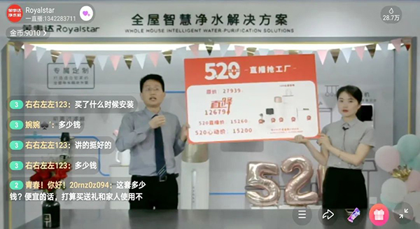 直播中,榮事達(dá)主播團(tuán)隊(duì)向觀眾們分享了榮事達(dá)RO冷熱一體機(jī)以及全屋凈水系列產(chǎn)品,并對(duì)產(chǎn)品性能品質(zhì)進(jìn)行了深度講解。此次直播活動(dòng)的重磅套餐——榮事達(dá)全屋智慧凈水系統(tǒng),基于個(gè)性化家庭定制場(chǎng)景,涵括了前置過濾器、中央軟水機(jī)、反滲透凈水機(jī)、速熱飲水機(jī)、凈飲一體機(jī)等系列產(chǎn)品,完美實(shí)現(xiàn)用戶家庭直飲、洗滌、洗浴、燒飯、洗菜、衛(wèi)生等全屋凈水覆蓋,有效杜絕各類有害物質(zhì)侵襲,全方位呵護(hù)家庭飲用水健康。榮事達(dá)高品質(zhì)、高顏值的明星產(chǎn)品一經(jīng)推出,吸引了直播間觀眾紛紛留言詢價(jià)。直播間超低折扣、精品爆款限量秒殺、預(yù)訂讓利以及好禮免費(fèi)送等福利更是讓參與活動(dòng)的消費(fèi)者熱情高漲,對(duì)榮事達(dá)的“良心讓價(jià)”好評(píng)如潮。