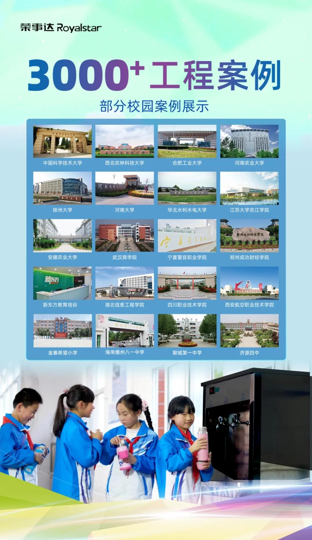 隨著現(xiàn)代化教育的全面推進(jìn),榮事達(dá)將人性化設(shè)計(jì)作為產(chǎn)品設(shè)計(jì)準(zhǔn)則,充分發(fā)揮自身技術(shù)、產(chǎn)品、質(zhì)量、服務(wù)等多方優(yōu)勢(shì),為小朋友提供綜合智能飲水服務(wù)方案,讓更多祖國的花朵擁有健康安全的飲水體驗(yàn),用心“喝”護(hù)健康茁壯成長!