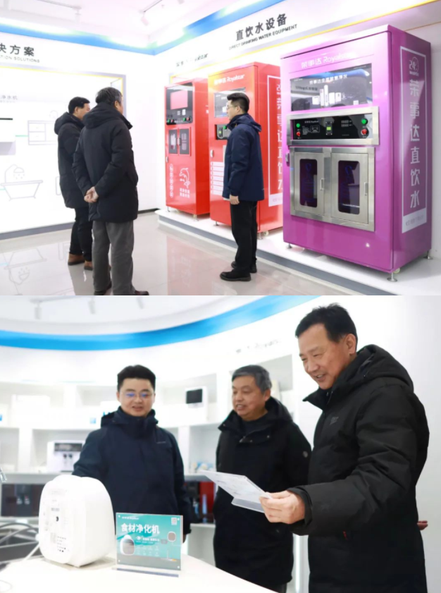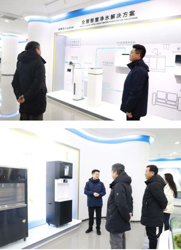 領導一行先后參觀了榮事達智能化生產車間和智慧水世界展廳,了解榮事達企業(yè)綜合實力及十大水處理系統(tǒng)具體發(fā)展狀況,現(xiàn)場體驗了企業(yè)最新研發(fā)定制產品與自主開發(fā)的物聯(lián)網校園智慧管理系統(tǒng),并為榮事達行業(yè)領先的技術實力點贊。