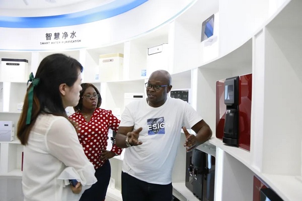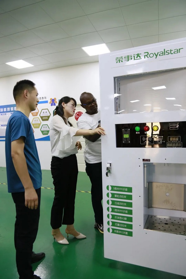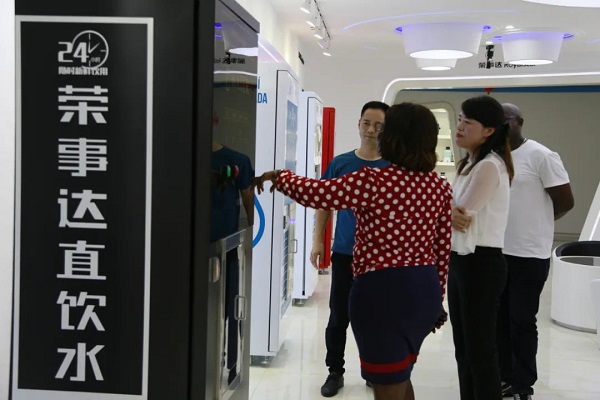 國際貿(mào)易負責(zé)人帶領(lǐng)客戶先后參觀了榮事達商用設(shè)備生產(chǎn)車間、榮事達智能家用凈水生產(chǎn)車間和智慧水世界展廳,了解榮事達企業(yè)綜合實力及十大水處理系統(tǒng)具體發(fā)展狀況。