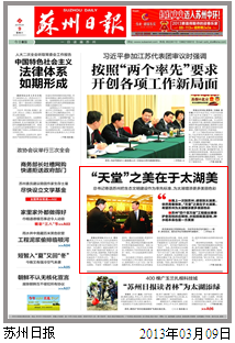 習(xí)近平對(duì)蘇州的秀美記憶猶新,“江南是個(gè)好地方,自古就有‘上有天堂,下有蘇杭’之美譽(yù)。之所以稱(chēng)蘇杭為‘天堂’,不僅因?yàn)槟抢锝?jīng)濟(jì)繁榮、社會(huì)安定,‘日出江花紅勝火,春來(lái)江水綠如藍(lán),能不憶江南’,江南美景美不勝收啊?!薄懊利愔袊?guó)”需要和諧共建。蘇州的“四個(gè)百萬(wàn)畝”工程給總書(shū)記留下了深刻印象。在最后的發(fā)言中,習(xí)近平又一次“點(diǎn)評(píng)”起蘇州:“蘇州‘四個(gè)百萬(wàn)畝’工程提出要保護(hù)老百姓的莊稼地,水稻田就是濕地,種水稻本身也是一方美景,《紅樓夢(mèng)》里大觀園中也有稻香村嘛。”習(xí)近平鼓勵(lì)說(shuō),和諧、全面是對(duì)科學(xué)發(fā)展內(nèi)涵理解得更深刻的反映,希望蘇州在率先、排頭、先行的內(nèi)涵中,把生態(tài)作為一個(gè)標(biāo)準(zhǔn),為江蘇乃至全國(guó)發(fā)展作出新貢獻(xiàn)。