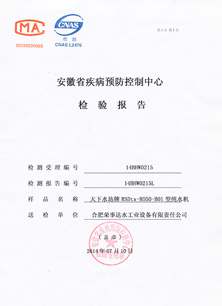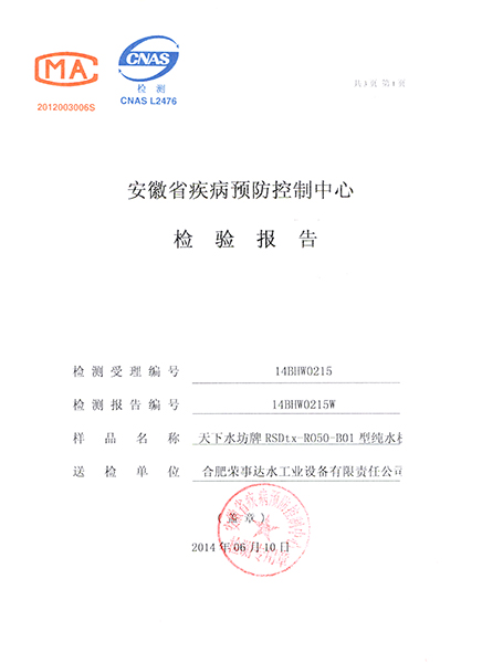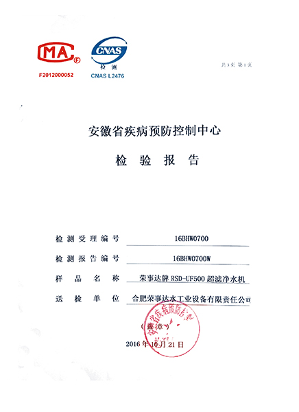 RSD-UF500超濾凈水機(jī)檢驗(yàn)報(bào)告...