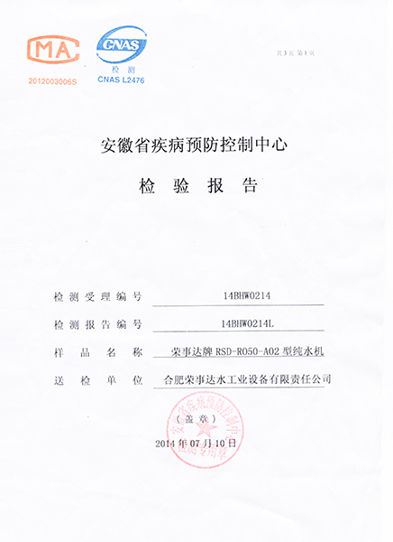 RSD-RO50-A02型純水機(jī)檢驗(yàn)報(bào)... -