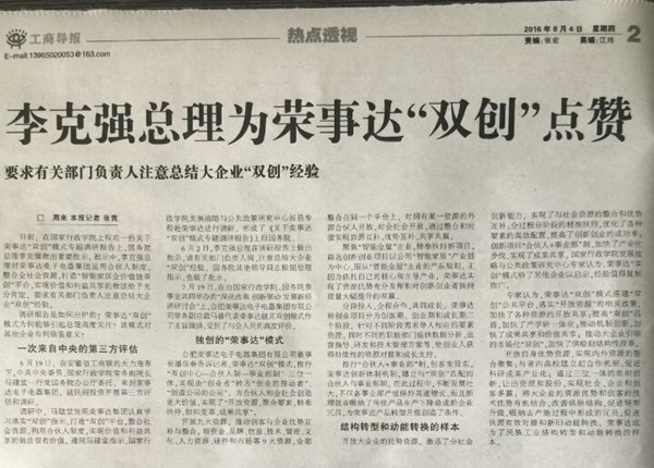 - 李克強(qiáng)總理為榮事達(dá)“雙創(chuàng)”點(diǎn)贊