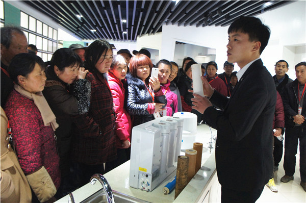 此批消費者大多來自于鄉(xiāng)鎮(zhèn)地區(qū),他們普遍反映,由于井水水垢水堿較重,味道苦咸,兒女回家過年都喝不慣。為了徹底解決家里的飲水難題,許多消費者有安裝凈水機的打算,但是如何選擇放心的品牌,卻著實不易。“能跟來看看凈水機生產(chǎn)廠家,了解到產(chǎn)品質(zhì)量和售后都有保障,心里很踏實,回去裝上家人喝水安全,用著也比去買桶裝水更方便?!背埠膭⒋鬆斝χf。