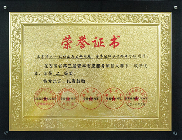 2016年,榮事達(dá)水工業(yè)公司走進(jìn)紅色革命老區(qū)——金寨縣,攜手金寨希望公益服務(wù)中心及地方公益協(xié)會共同發(fā)起“‘給山區(qū)孩子一杯水’——援建金寨縣中小學(xué)凈水設(shè)備公益項目”,為金寨縣所有中小學(xué)援建直飲水系統(tǒng)400多套,全面呵護(hù)學(xué)生飲水健康。該項目被全國文明辦評為“全國百佳公益項目”。