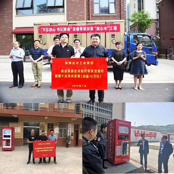 山區(qū)孩子喝上健康水此外,為解決部分貧困地區(qū)“因水致病 因病致貧”的難題,榮事達積極響應(yīng)國家“精準(zhǔn)扶貧”號召,責(zé)任上肩,擔(dān)當(dāng)作為,大力發(fā)展健康扶貧事業(yè)。前不久,榮事達攜手團省委、省青聯(lián)啟動“青力扶貧 聯(lián)創(chuàng)夢想”健康扶貧“放心水”工程,榮事達向安徽地區(qū)貧困村捐贈凈水設(shè)備,建立健康扶貧水站,讓村民們喝上健康水。建立“健康扶貧水站”是榮事達參與建設(shè)貧困地區(qū)飲水健康保障體系的重要措施,在為村民們提供干凈無污染的飲用水環(huán)境的同時,有效防止“病從口入”,實現(xiàn)健康脫貧。目前榮事達已在河北邯鄲、金寨縣漆店村、阜南縣王家壩村等多地建立扶貧水站,成功解決當(dāng)?shù)鼐用耧嬎踩珕栴}。