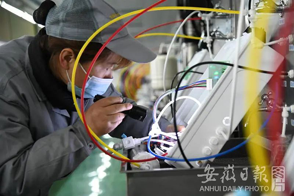 員工在家用凈水機(jī)生產(chǎn)線上作業(yè)