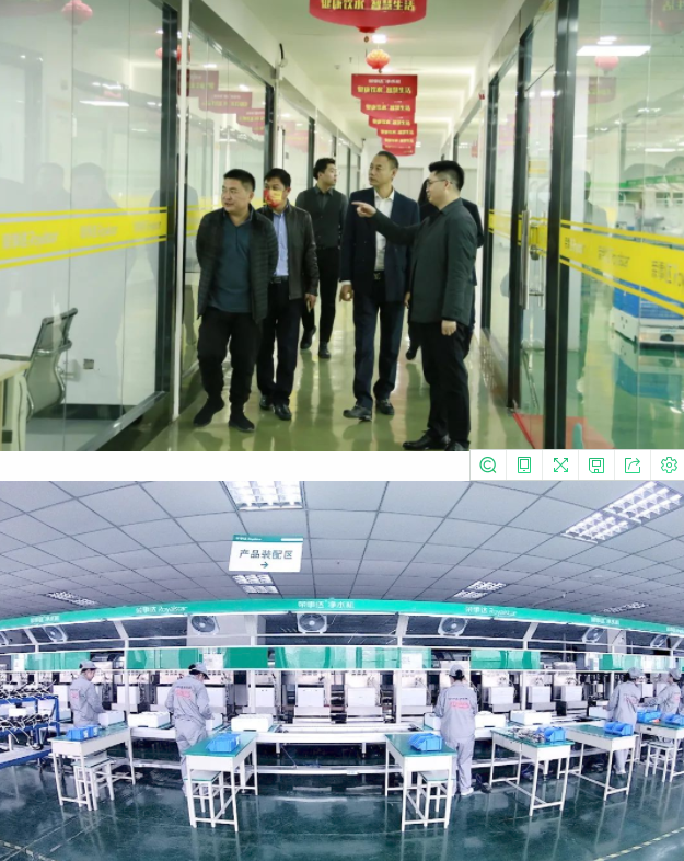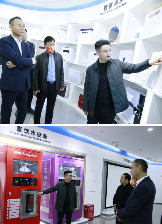 領(lǐng)導(dǎo)一行先后參觀了榮事達(dá)商用設(shè)備生產(chǎn)車間、榮事達(dá)智能家用凈水生產(chǎn)車間和智慧水世界展廳。了解榮事達(dá)企業(yè)綜合實(shí)力及十大水處理系統(tǒng)具體發(fā)展?fàn)顩r。