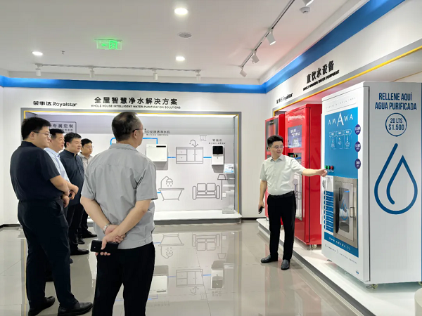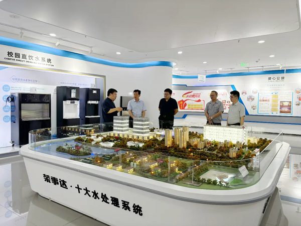 - 7月10日, 三門峽市城鄉(xiāng)一體化示范區(qū)(高新區(qū))黨工委委員張立新,大唐新能源產(chǎn)業(yè)園運(yùn)營中心主任、招商局副局長楊華夏,大唐新能源產(chǎn)業(yè)園運(yùn)營中心招商部長李海強(qiáng)一行蒞臨榮事達(dá)水工業(yè)集團(tuán)參觀交流,榮事達(dá)水工業(yè)集團(tuán)董事長雷鳴,總經(jīng)理王悅生,生產(chǎn)制造總經(jīng)理孫曉峰熱情接待。此次參觀中,三門峽市城鄉(xiāng)一體化示范區(qū)領(lǐng)導(dǎo)一行首先深入榮事達(dá)智能化生產(chǎn)車間,近距離參觀了集團(tuán)先進(jìn)的全智能化生產(chǎn)線及七大實驗室。隨后,領(lǐng)導(dǎo)們移步至智慧水世界展廳,全面了解了榮事達(dá)水工業(yè)集團(tuán)的發(fā)展歷程、輝煌成就、公益貢獻(xiàn)及黨建引領(lǐng)下的企業(yè)文化。在展廳內(nèi),領(lǐng)導(dǎo)們對榮事達(dá)水工業(yè)集團(tuán)的全屋智慧凈水系統(tǒng)、社區(qū)智慧飲水系統(tǒng)、醫(yī)院用水處理系統(tǒng)、農(nóng)村安全飲水系統(tǒng)、校園直飲水系統(tǒng)等十大水處理系統(tǒng)表現(xiàn)出了濃厚的興趣。這些系統(tǒng)不僅體現(xiàn)了榮事達(dá)在水處理領(lǐng)域的深厚技術(shù)積淀,也彰顯了其致力于通過科技創(chuàng)新改善民眾生活質(zhì)量的堅定信念。在座談會上,領(lǐng)導(dǎo)們認(rèn)真觀看了榮事達(dá)企業(yè)宣傳片和榮事達(dá)凈水工廠宣傳片。董事長雷鳴,作為地道的河南人,對家鄉(xiāng)領(lǐng)導(dǎo)的到來表達(dá)了由衷的歡迎。他還就集團(tuán)的多元化產(chǎn)品矩陣、市場發(fā)展戰(zhàn)略及持續(xù)創(chuàng)新能力進(jìn)行了詳細(xì)介紹。總經(jīng)理王悅生特別強(qiáng)調(diào)集團(tuán)順應(yīng)新基建趨勢,結(jié)合物聯(lián)網(wǎng)、大數(shù)據(jù)和云計算技術(shù),首創(chuàng)社區(qū)智能凈水工廠項目,展現(xiàn)凈水科技創(chuàng)新實力,并獲得20項專利,行業(yè)領(lǐng)先。三門峽市城鄉(xiāng)一體化示范區(qū)(高新區(qū))黨工委委員張立新對來自家鄉(xiāng)并在合肥取得輝煌事業(yè)成就的雷鳴董事長表達(dá)了高度的贊賞與由衷的欣喜。他特別指出,榮事達(dá)水工業(yè)集團(tuán)在水處理領(lǐng)域的卓越成就令人震撼,不僅展現(xiàn)了企業(yè)強(qiáng)大的技術(shù)實力和市場競爭力,更彰顯了其勇于創(chuàng)新、追求卓越的精神風(fēng)貌。希望以此次交流為契機(jī),增進(jìn)聯(lián)絡(luò),架起一座交流互通的橋梁。