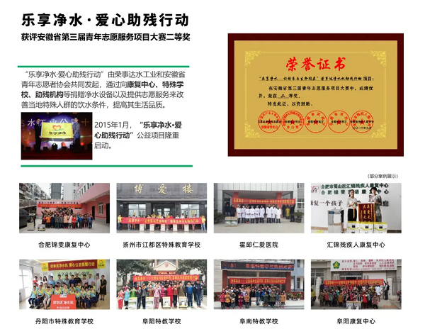 榮事達(dá)水工業(yè)公司積極投身于公益事業(yè),其公益行動(dòng)廣泛覆蓋健康助學(xué)、愛心助殘、精準(zhǔn)扶貧及鄉(xiāng)村振興等多個(gè)領(lǐng)域,公益的足跡遍布全國(guó)。公司用實(shí)際行動(dòng)踐行社會(huì)責(zé)任,彰顯企業(yè)擔(dān)當(dāng),贏得了社會(huì)各界的廣泛贊譽(yù)。
