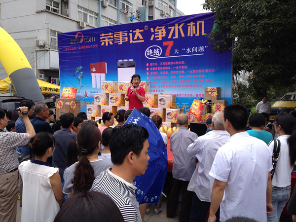 為打開市場、推廣產品,蕪湖管理中心舉辦了多次市場活動。7月5日,榮事達凈水機“送健康 進萬家”感恩回饋活動在蕪湖市三山區(qū)順利舉行,現(xiàn)場人氣爆棚。消費者購機不但能享受價格優(yōu)惠,還能砸金蛋抽大獎。活動當天,現(xiàn)場成交凈水機達34臺,電動車、洗衣機等大獎均被抽出。