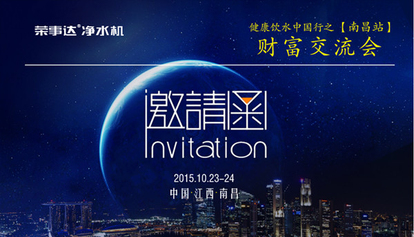 2015年10月23日--24日,榮事達(dá)凈水機健康中國行·江西南昌站財富交流會將隆重舉行。會議將深刻剖析終端經(jīng)典案例的實操方法、迅速拓展經(jīng)銷網(wǎng)...